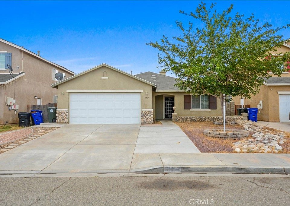 Welcome to this beautiful single-story home nestled in Victorville! Offering 3 bedrooms, 2 bathrooms, plus a versatile 4th bedroom that can be used as an office or flex room, this home is designed for both comfort and functionality. A spacious open floor plan seamlessly connects the living room, dining area, and kitchen—perfect for everyday living and entertaining. The living room features a cozy fireplace for a warm and inviting atmosphere, while the kitchen boasts ample cabinet and counter space, a center island, and a layout ideal for cooking and gathering. The private primary suite provides a relaxing retreat complete with a walk-in closet. Additional conveniences include an indoor laundry room located just off the garage, a 2-car garage, and a storage shed for extra space. Step outside to a backyard designed for outdoor enjoyment, featuring a covered patio perfect for entertaining or simply relaxing in the shade.