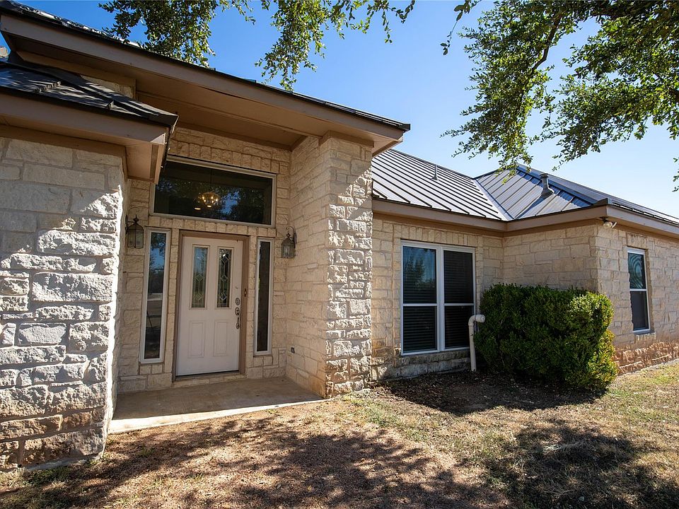 The property is 24.92 AG exempt, plus 2 additional acres not AG exempt. Huge shed 40x60 that can be used as a horse barn, and 4 car carport. The home is white stone with a covered patio that looks over the pool, metal roof. Island kitchen open to family room with beautiful fireplace, breakfast bar, dine in kitchen and formal dining room. Tile flooring in main areas and carpet in guest bedrooms. MIL plan with 2 spacious guest rooms, large utility room with room for a freezer. Primary bedroom has baywindow, wood flooring and view of the land, primary bathroom has separate shower, soaker tub, 2 vanities and a walk in closet.