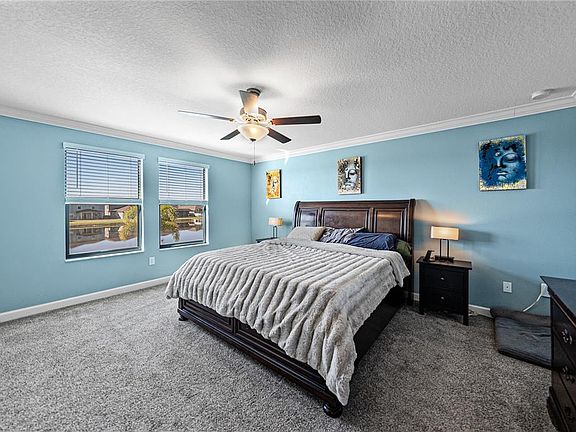 Welcome to your new home in sunny Florida! This beautiful, very popular 2019 Lennar home features 4 bedroom, 2.5 bath with over 3,034 heated square feet of comfort and style, perfectly positioned to enjoy amazing Florida sunsets over on a serene pond. From the moment you step inside, the 9-foot soaring ceilings and crown molding in the family room create a fresh, open, elegant atmosphere. The main floor features an open spacious, centrally located family area that flows seamlessly into a gourmet kitchen complete with granite countertops, stainless steel appliances, a large island with seating, 42-inch dark hickory stained cabinets, and a walk-in pantry just off the butler’s prep area. The formal dining or living room is currently used as an office, providing great flexibility to tailor the space to your needs. The home also features a versatile mudroom off the garage and half bath, perfect for backpacks, pet essentials, or even a compact workspace. Upstairs, all four bedrooms are arranged in the high demand split floor plan. The stairs ascend into a huge, centrally located loft ideal for a media room, playroom, or additional office space. The primary bathroom is very spacious and feature a very large bath with separate tub, shower and water closet. The "L" shaped primary closet comes with built in cabinetry. The primary and secondary bathrooms both include dual sinks and beautiful granite finishes. Step outside to enjoy a fully fenced large backyard and a peaceful screened porch overlooking the pond. The home includes hurricane shutters for added security, a water softener system for amazing water and an energy efficient hybrid water heater. Your new home is not in a flood zone, for amazing insurance prices. Your new home has excellent curb appeal with its paver driveway, covered front porch and well-kept tropical landscape. The South Fork master planned community amenities include a clubhouse, pool, park, and sports court and are a short walk to the south. Your new home is located in the desirable Riverview area, just 25 minutes southeast of downtown Tampa, where you'll find the arts, museums, live events at the Benchmark International Arena, home of the Tampa Bay Lightning. Even cruise terminals to the Keys, Mexico and throughout the Caribbean are all just 25 minutes from your home. Speaking of location, your new home is only a mile from US-301, where you'll find everything you want. Shopping, fast food, fine dining, seafood, groceries, hospitals, movie theaters and so much more. Tampa International Airport and Raymond James Stadium, home of the world famous Tampa Bay Buccaneers are about 50 minutes away. Location, location, location. The virgin Bradenton and bustling Pinellas county, sugar sand, Gulf Coast beaches are only an hour to the west. An assumable VA loan at 5.22% is available for VA qualified buyers. All measurements are approximate and not guaranteed. Homes like this don’t come around often. Call or text today to schedule your private viewing!