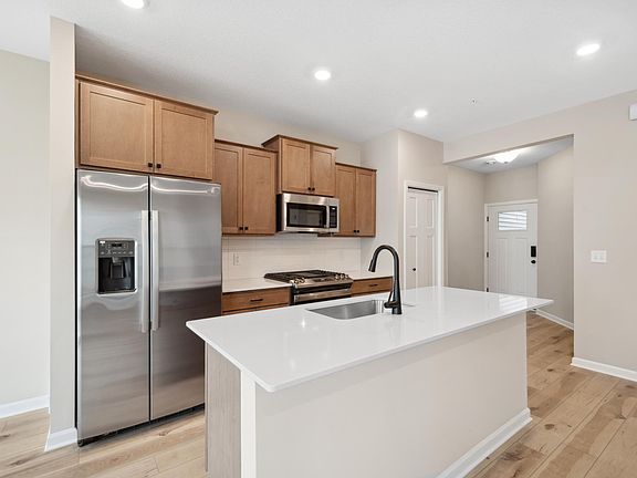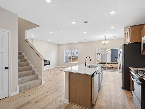 This 3-bed, 2.5-bath home features an open-concept living space on the main floor with all the bedrooms and full baths up on the second floor. Step onto the covered front porch and into the wide foyer, offering a grand first impression from the moment you enter. The foyer immediately opens to the kitchen in center of this lovely home. An oversized island with a sink offers plenty of room for meal prep on one end and an overhang for high-top seating on the other. Some additional design features you'll find in the kitchen include top-of-the-line appliances, sleek countertops, upper and lower cabinetry, and a pantry. The kitchen and dining room flow effortlessly into the large family room, adorned with a set of windows along the back wall. This spacious room is a blank slate awaiting your personal design touch. Before heading up to the second floor, take a look at the convenient mud room and half bath just beyond the 2-car garage entry. Ascend to the second level, where you'll be greeted by a wide loft. From a cozy entertainment space to a game room, there are so many ways to transform this bonus space in your new home. A spacious laundry room, a full bathroom, and 2 secondary bedrooms are tucked away down the hall, while the owner's suite sits off on the other side of the floor. This private suite features a full on-suite bathroom with a walk-in closet for effortless morning routines.