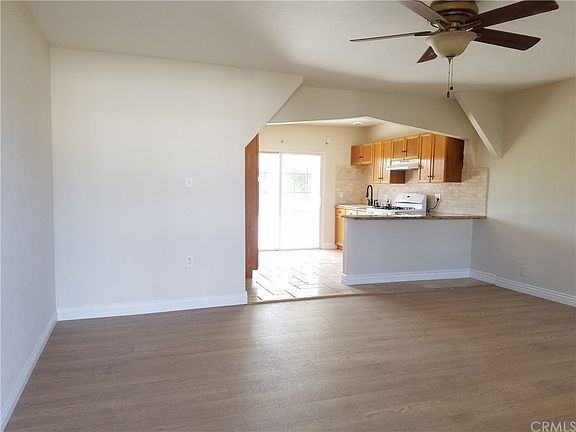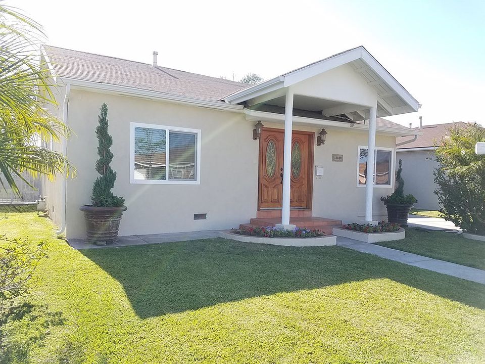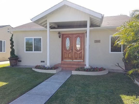 Move in ready, a completely remodeled gem. Open floor plan for modern living. New laminate flooring in living room & the 2 bedrooms. Designer travertine floors in kitchen and on backsplash, as well as in the bathroom. Granite countertops & a peninsula with custom designer touched throughout. The kitchen boasts 2 large pantries for plenty of storage. Energy efficient vinyl windows, newer AC with new ducting. The kitchen opens up to a huge backyard, with covered patio, a tranquil fountain, orange tree & unobstructed grassy yard; a dream for children, outdoor entertaining or future expansions. Conveniently located to freeways & wonderful schools. This house was built in 1950 and is located in a well established residential area with no apartment buildings near by. Property sold as is. No credits or repairs will be made by seller. Buyer and buyers agent to verify all information and do their due diligence.