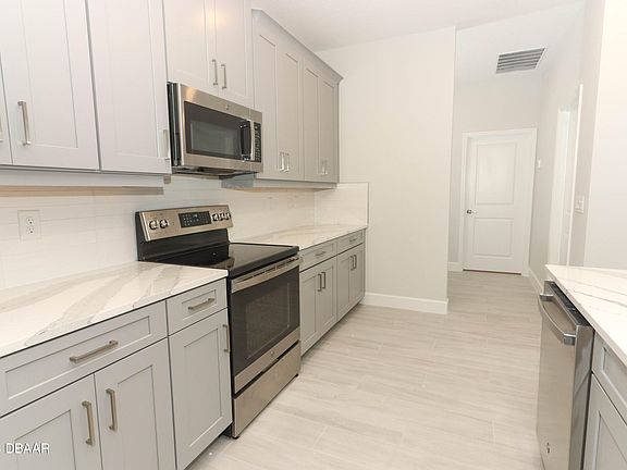 MLS# 1110027 REPRESENTATIVE PHOTOS ADDED! November Completion - The Saint Croix in Windchase at Halifax Plantation has it all from the stunning curb appeal to designer interior. With 4 bedrooms and 4.5 baths, each bedroom has a private bathroom. Enter the home through the inviting foyer which is connected to two of the secondary bedrooms. Through the foyer you will enter the open-concept kitchen with center island that overlooks the gathering room which leads to the large, covered lanai. The spacious primary suite includes a garden tub, large walk-in shower, dual vanities, water closet & a walk-in closet which can be connected to the laundry room if desired. Design options include: wood looking tile in all main areas (upgraded carpet bedrooms only), quartz countertops in kitchen, backsplash in kitchen, upgraded white cabinets, crown kitchen cabinets, and cushion close doors on cabinets.