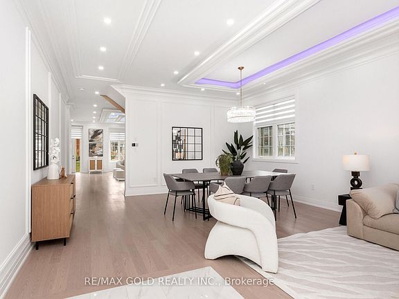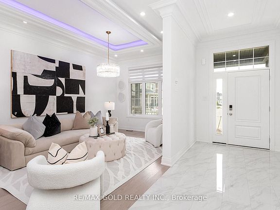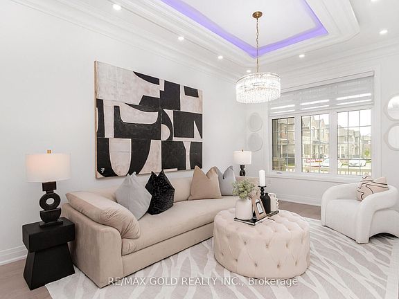 Brand new Never Lived in Before, Corner premium lot home located in one of Oakville's most prestigious and family-friendly neighbourhoods, backing onto a serene ravine for added privacy and natural beauty. This beautifully crafted residence offers over 3,714 sq ft of above-grade living space, thoughtfully designed with high-end finishes and countless upgrades throughout. The chef-inspired kitchen features premium cabinetry, quartz countertops, gold brushed faucets and accessories, and top-of-the-line stainless steel appliances. Wide-plank hardwood flooring flows across both the main and second floors, complemented by oak stairs with elegant metal spindles. With soaring 10 ft ceilings on the main floor and 9 ft ceilings on the second, the home feels airy and grand. A versatile loft can easily be converted into a fifth bedroom or used as an office or media room. The primary ensuite serves as a spa-like retreat with a free-standing soaker tub and custom tile work. The home also includes second floor laundry with cabinetry, designer light fixtures, upgraded windows, pot lights throughout, and rough-ins for central vacuum and a security system. The layout is practical and elegant with separate living, dining, and family rooms, offering both comfort and function. Situated just minutes from Highways 403 and 407, top-rated schools, parks, banks, and all essential amenities, this move-in ready luxury home leaves no detail overlooked.