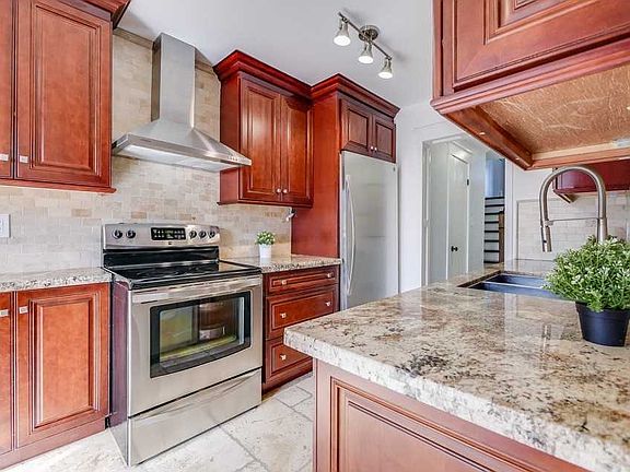 Nicely Renovated, Bright & Spacious 3+1 Bedrooms In Top School District! Cherry Wood Kitchen With Extended Cabinets & Matching Crown& New Backsplash. Granite Counter Tops, Travertine Tiles & Under Mounted Double Sink. Ren Hardwood Floors On All Levels, W/Wood Stone Fireplace. New Deck & Fully Fenced Backyard W/Decorative Stone Work For Your Entertaining Needs.