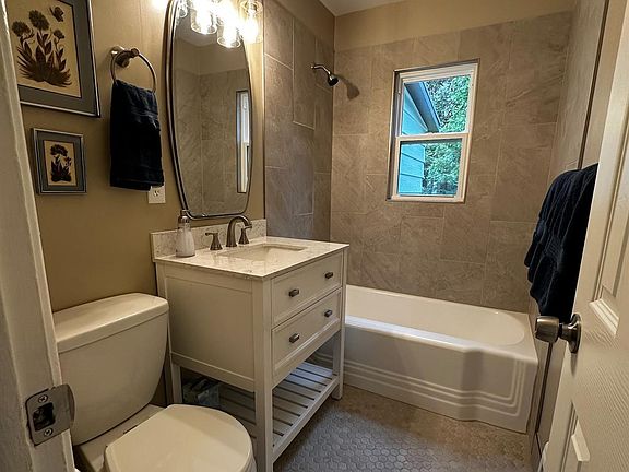 Step inside to find refinished hardwood floors, modernized bathrooms, new windows, and a brand-new roof installed in 2024. The kitchen is both functional and stylish, featuring updated countertops, a gas stove, refrigerator, and washer/dryer hookup.