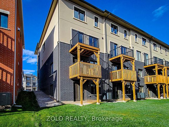 Brand-new freehold 3-storey end unit townhouse offering 2332sq.ft. of modern living space. This home features 4 bedrooms, 4 bathrooms, and sleek laminate flooring throughout. The ground level includes a 4th bedroom with a private entrance from the garage, ideal for guests or a home office. The second floor boasts an open-concept layout with a contemporary kitchen, stainless steel appliances, large center island, dining area, and a bright great room with walk-out to balcony. Perfectly situated beside 16 Mile Creek nature park, within walking distance to Oakville Hospital, and just minutes from major highways, public transit, shopping, dining, and entertainment. Unfinished walk-out basement offers excellent future potential.
