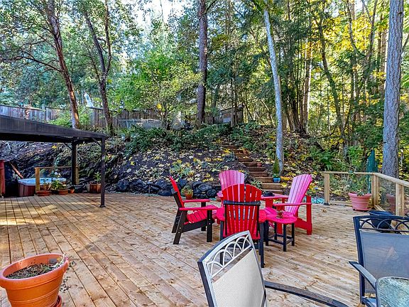 Welcome to this beautifully crafted 3 bed/3 bath home with over 2,200 sq. ft. of living space on a private, forested 9,000 sq. ft. lot. Designed for relaxation and entertaining, it offers nearly 1,000 sq. ft. of newly built decks and covered porches perfect for year-round enjoyment. Inside, find large principal rooms, wood parquet flooring, and a custom kitchen with solid wood cabinetry. The primary suite features a fireplace, gorgeous views, ensuite with large shower, and private sunroom is ideal for year-round growing or relaxing in natural light. While the second bedroom opens to a spacious patio overlooking a babbling stream. The 3rd bedroom is also very spacious and airy. Enjoy the hot tub under the stars, a fully fenced yard, double driveway, Boat/RV parking, and serene forested setting just minutes from town. Experience Maple Bay living at its finest—where comfort, craftsmanship, and nature unite.