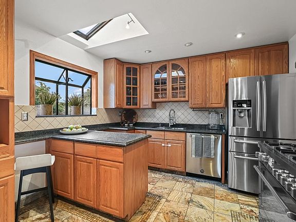 Modern bathroomLush fruit treesClassic fireplacePrivate backyard oasisSkylit islandTasteful tile workStainless steel appliances