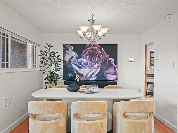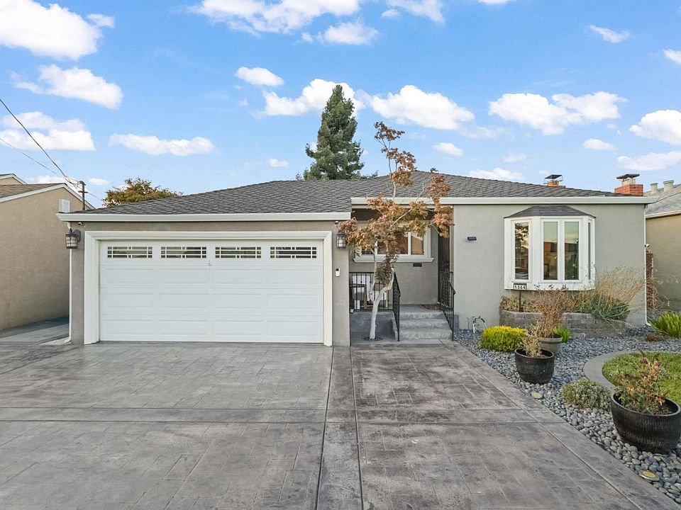 Welcome to 1364 Linton Street, a beautifully updated home in the heart of San Leandro that perfectly blends style, comfort, and convenience. From the moment you arrive, the homes curb appeal shines with a stamped concrete driveway, fresh landscaping, and a charming entry framed by lush greenery. Inside, sunlight pours in from the bay window, highlighting the spacious living area with hardwood floors, recessed lighting, and a classic fireplace that adds warmth and elegance. The layout flows into a spacious dining area, ideal for gatherings or family meals. The updated kitchen offers granite countertops, stainless steel appliances, warm wood cabinetry, and a skylit island that fills the space with natural light. Three well-appointed bedrooms provide restful retreats, and the modern bathroom features tasteful tile work and another skylight for an airy feel. Not to be missed is the show stopping private backyard oasis with multiple seating areas, lush fruit trees & low-maintenance landscaping, perfect for relaxing or entertaining. With dual-pane windows, a finished garage, and thoughtful upgrades throughout, this move-in-ready home is close to shops, parks, schools & major freeways ideal for commuters and families alike. Don't miss your chance to make this exceptional home yours!