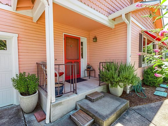 You will love this charming single level cottage with its stylish updated interior! The open floor plan and bamboo floors create a seamless flow throughout the living areas and private bedrooms. The gourmet kitchen is a highlight, featuring granite countertops, custom cabinets and upscale stainless appliances. The large primary bedroom boasts an en-suite bath with many amenities featuring a tiled walk-in shower and heated towel rack. The second Bath has also been updated with a custom tile surround, clerestory windows and new fixtures. The attached 2 car garage features walls of storage. Outside, the lush backyard offers a new private handicapped accessible deck (with access into the house) for your al fresco dining with an arbor enclosed hot tub. Backyard vegetation includes lovely climbing roses, peonies, and 3 small fruit trees. The front landscaping is designed for easy maintenance with native and drought tolerant plantings. This would be a wonderful place to call home!