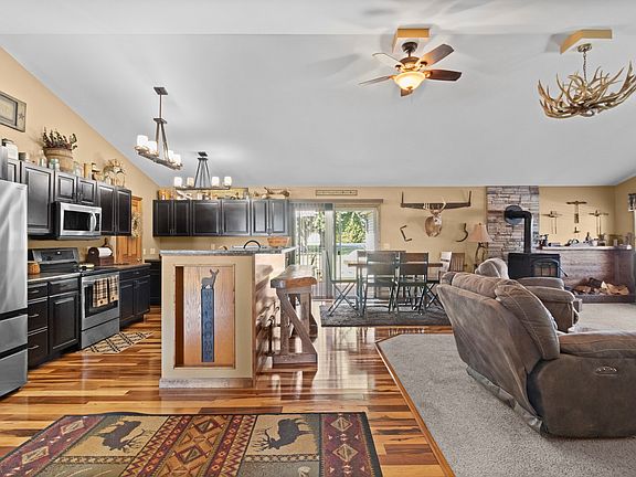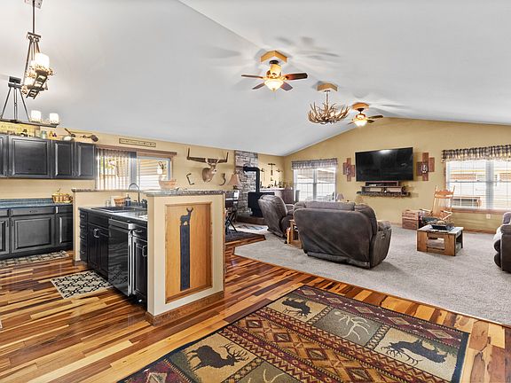 Vaulted ceilingLaundry roomLarge kitchen islandOpen floor plan