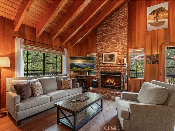 Turnkey Lake Arrowhead Gem with Lake Rights, Solar & Designer Finishes. Welcome to a home that truly checks every box—from lake rights and paid-off solar panels to a flat, street-level driveway on a county-maintained cul-de-sac with easy year-round access. This thoughtfully designed retreat blends modern comfort with mountain charm, offering stunning finishes, no deferred maintenance, and a sun-soaked, tranquil setting. The inviting main level features an open-concept living space with vaulted, beamed ceilings, a beautifully remodeled kitchen with quartz counters, designer cabinetry, custom tile, and luxury vinyl floors, plus two bedrooms and 1.5 bathrooms. The primary bathroom is a showpiece with Calacatta herringbone marble, blending elegance with everyday luxury. Upstairs, a versatile loft functions as a fourth bedroom, office, or cozy hideaway. The lower level adds even more flexibility with a bedroom, full bath, and built-in Murphy bed—ideal for guests or extended family. Enjoy mountain living at its best with two expansive decks overlooking a seasonal creek and wooded landscape. Nearly all furnishings are included—refrigerator, washer/dryer, living and dining sets, and bedroom furniture—making this a true turnkey opportunity. Additional highlights include a tankless water heater, dual-pane windows, and a four-zone covered electric A/C system. Located in the sunny north side of Lake Arrowhead, you’ll appreciate less snow to shovel while still being minutes from the lake and village. This is the kind of home that leaves a lasting impression—refined, relaxed, and ready to enjoy.