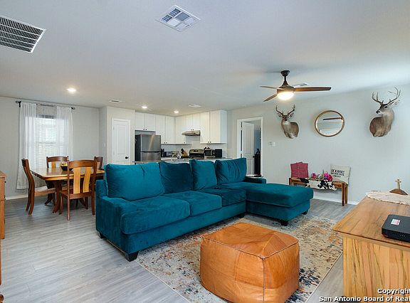 Cozy 3 bed 2 bath home conveniently located just a short commute from Lackland Air Force Base. Key features include an oversized corner lot, open floor plan, granite counters, SS appliances, gas cooking, and durable LVP flooring in the common areas. The community oriented neighborhood includes an amazing resort style pool, fitness center, park, and a recreation center for your family to enjoy. Back yard includes a storage shed and detached deck. This home has been well maintained and is turnkey ready for the new owner, and don't forget to ask your agent about the incentives seller is offering on this property.