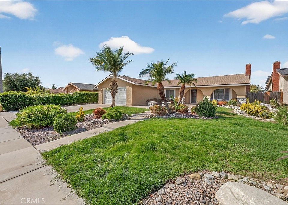 Single story home with great curb appeal, both the front yard and the back boast sod and landscape includes rock border detailing, new plants and brick patio, low maintenance & tastefully done. Living room which has a fireplace, high ceilings with track lighting, decorative niches & display shelves. Spacious kitchen and dining area features light wood toned cabinetry with an abundance of storage cabinetry, counter space to prepare and serve, decorative pendant lighting, decorative glass insets to multiple cabinet doors, recessed lighting, Ceramic tile, custom tile backsplash kitchen counter tops All 3 bedrooms have additional storage & shelving which adds storage. The master bedroom has a master suite. The driveway offers plenty of parking with additional area of concrete to provide extra space