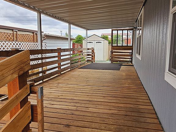 Updated and remodeled this house just shines! The vaulted ceiling opens the living area and gives a light and airy feel. Quartz countertops just shimmer and you will love the kitchen with undermount stainless steel sink and upgraded faucet. Stainless steel appliances included and a wonderful oversized French door refrigerator! Nice sized utility room with washer and dryer. The primary suite is spacious with a LARGE bath that features a walk-in shower and upgraded vanity. Generous additional bedrooms and a Murphy Bed included! Exterior features a large, covered deck, ample parking for four cars and multiple sheds. Easy care yard that is set up for low to no maintenance. Great community with club house, pool, and activities you can join in.