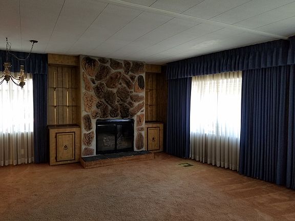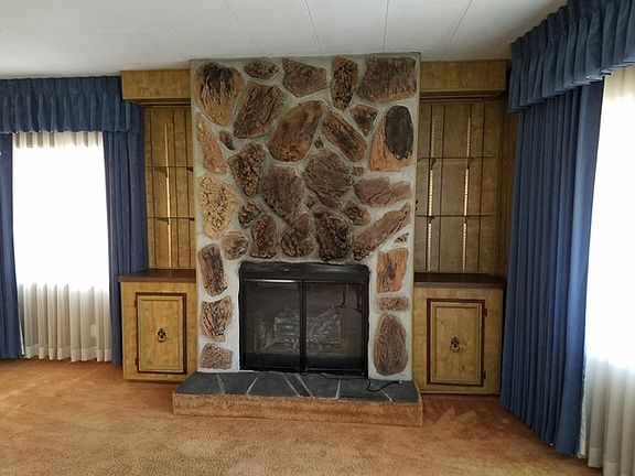 Great Room Floor Plan, Open Kitchen concept, Well cared for 1440 Sq Ft. Home. Large Master w/Walk-in Closet, Master Bath offering Soak Tub and separate shower. Additional Oversized Bedroom w/Bathroom. Utility Room has ample storage w/desk/office area. Formal Living Room has wood burning fireplace for ambiance, a cozy room to enjoy your family or guests while entertaining. Sprinkler System, Covered Front Porch for relaxing & BBQ's. Senior Park 55 or older-$918 includes Pool~Library~Rec/Mtg Room!