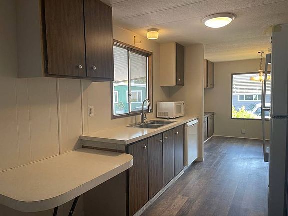 Manufactured Home in Highly Sought Senior Park! You will love the layout of this home, it offers two living spaces, and a large family room where there is an abundance of upgraded vinyl dual pane windows. Kitchen is galley style kitchen with new refrigerator. Both bedrooms are larger than most and master bathroom has walk in shower as well as the guest bathroom. Utility room has extra space for fridge or freezer and includes washer and dryer. Home is equipped with two new exterior doors, a covered wheelchair ramp and covered deck at front door, Carport parking for two cars, large shed with electric and side yard for gardening and more. Park is a wonderful community where you will enjoy the clubhouse, swimming pool, senior activities, RV parking, close to bus line, shopping and freeway I-205.