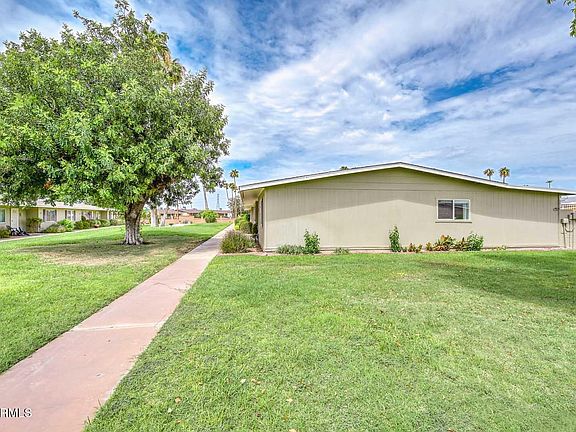 Welcome to this beautifully maintained and lightly lived-in end-unit patio home nestled in the heart of Sun City's vibrant 55+ community. Features include a remodeled kitchen, bathrooms, partially updated flooring, and fresh interior paint in select areas. Used seasonally and shows pride of ownership. Ideal for full-time or winter living in an active adult community.