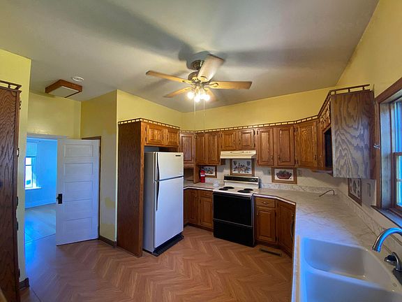1.5 bathrooms, large family room and dining room combo, lots of kitchen cabinets for storage, central gas heat, central air, washer/dryer hookup, water from cistern.
