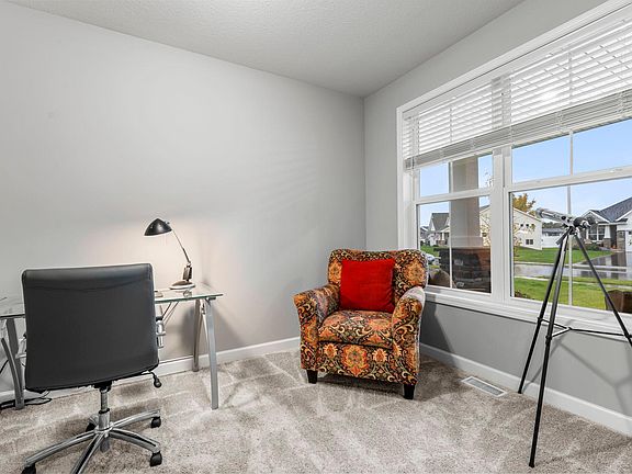 Welcome to this stunning four-bedroom, three-bathroom Lennar home in the highly sought-after Edgewater community. Built in 2023 near the Mississippi River, enjoy easy access to scenic trails, parks, shopping, and dining. The bright, open main level features luxury plank flooring, a front office with French doors, a spacious kitchen with stainless steel appliances, a large center island, and walk-in pantry, plus a cozy living room with a gas fireplace. Upstairs offers four generously sized bedrooms, including a luxurious primary suite with a walk-in closet and private bathroom. The upper-level laundry includes a washer and dryer. The partially finished walkout lower level with new carpet is perfect for future living space. Three-car garage. A must-see!