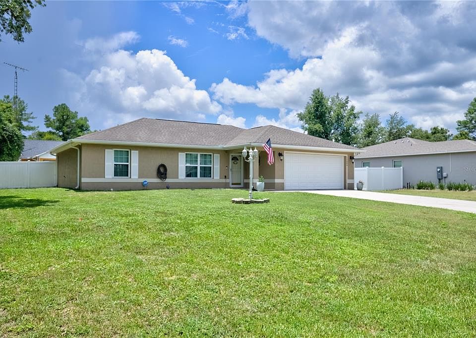 Location, location, location!! Close to 484 and minutes to I75 or State Road 200. This home was built in 2018 and still looks brand new. Move in ready and loved. 3 bedrooms 2 baths with a converted garage an added laundry room/ utility room. This is a split floor plan with a large living space. The garage was converted with flex space and two additional rooms. These rooms can be removed and the garage back in operation. The home has a great screened in lanai and privacy fence was added in 2019. Seamless gutters were added in 2020. The kitchen has upgraded appliances and tile backsplash. This home will not last long...schedule your showing today.