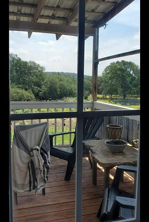Upstairs apt. With covered deck . The 12x16 deck over looks the woods. The apt. Has cherry floors and a mahogany ceiling. 10ft. Ceilings. The first 8 feet are gray and the last 2 feet are white. Large pantry. White marble contertops with black sink both in the kitchen and the bathroom. The marble island has black and white marble on the sides. There is a stove,frig, and microwave. The bathroom has a tub and a dryer. There is a fan for the bedroom and chandeliers for the kitchen and living . There central air and heat though the air for now window unit. All utilities are included.