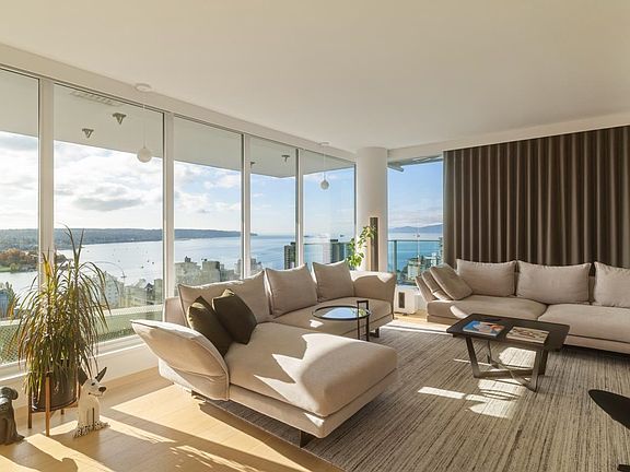 BREATHTAKING SOUTH WEST FACING SUB PENTHOUSE WITH PANORAMIC WATER VIEWS ACROSS ENGLISH BAY! THE SUITE - reimagined since new to take it to the next level in home automation + functional design. A stunning sliding wall system + bespoke window treatments provide flexibility + privacy, while still showcasing the incredible views. Two oversized balconies extend the living space even further. Custom upgrades include Creston home automation, Gaggenau appliances + a spectacular spa room. Entertain, live + work at home in style. THE BUILDING - Mirabel - by Henriquez Architects + Marcon Construction - Unparalleled design and execution in the heart of the city's most vibrant and beautiful neighbourhood. Steps from endless shops/cafes/restaurants and 5 mins walk to the Seawall at Sunset Beach!