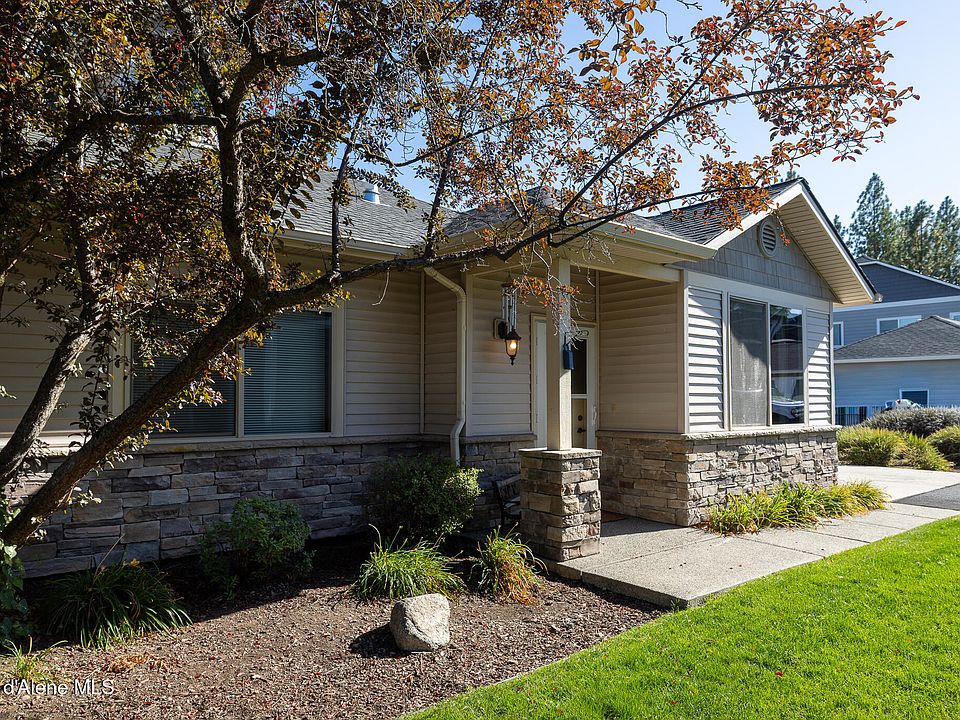 Discover Black Bay Village! This beautiful built townhome-style condo is tucked inside a quiet, gated community of just 40 homes and borders 67 acres of Black Bay Park along the Spokane River-perfect for walking, swimming, or paddle boarding. Featuring two primary suites (one on each floor), plus a third bedroom, half bath, and main floor laundry, the layout is both functional and flexible. The spacious kitchen offers upgraded cabinets, quartz counters, newer stainless appliances, and a large island. enjoy a gas fireplace, 9' ceilings, and an enclosed private patio. The HOA maintains all the exterior care, including lawn and snow removal, for easy living. Community amenities include a clubhouse with kitchen and fitness room. Move-in ready and just minutes to I-90 and the Centennial Trail!