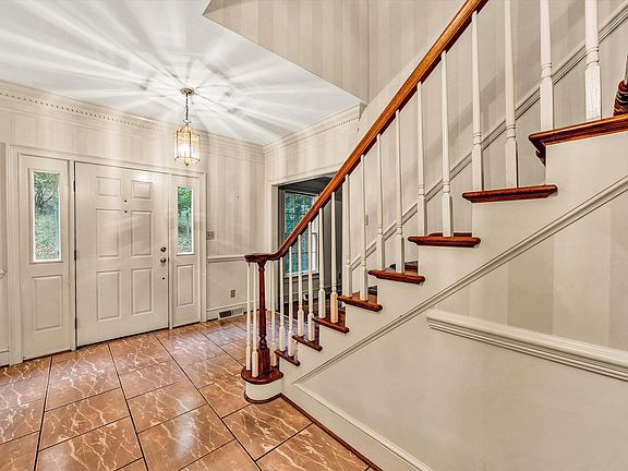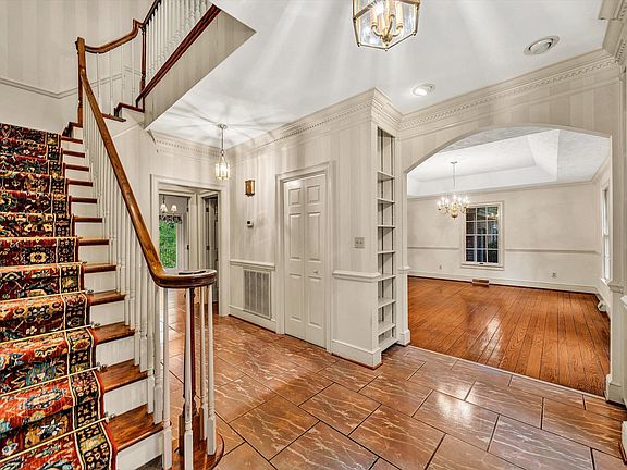 Well built, freshly painted, new carpet in bedrooms, new sidewalks/stoops, plus lots of updates. This brick colonial located in the Lake Wood Park area, one of Raleigh Courts most sought after locations has tons of privacy on 1.53 acres of land. On entry level this home boasts with character and charm with incredible moldings, Masonry fireplace, wooden beams, 9ft ceilings, hardwood floors, and built-ins. The Kitchen and Family room off the rear of the home both walk out to the screened-in-back porch and back porch with hot tub that overlooks the woods. Upstairs has 4 bedrooms and 2 full baths. The Primary Suite is very large with walk-in closet and spacious bathroom. The lower level has a Den with wood burning fireplace, Recreation room, 5th bedroom, and 3rd full bath. The lower level has high ceilings, lots of windows and walks out to another back porch. Ample storage space in the lower level as well. There is an attached 2 car garage that enters to the first floor Laundry/Mud room off the kitchen. There is a whole house generator. There is wiring in place in the backyard for an invisible fence.