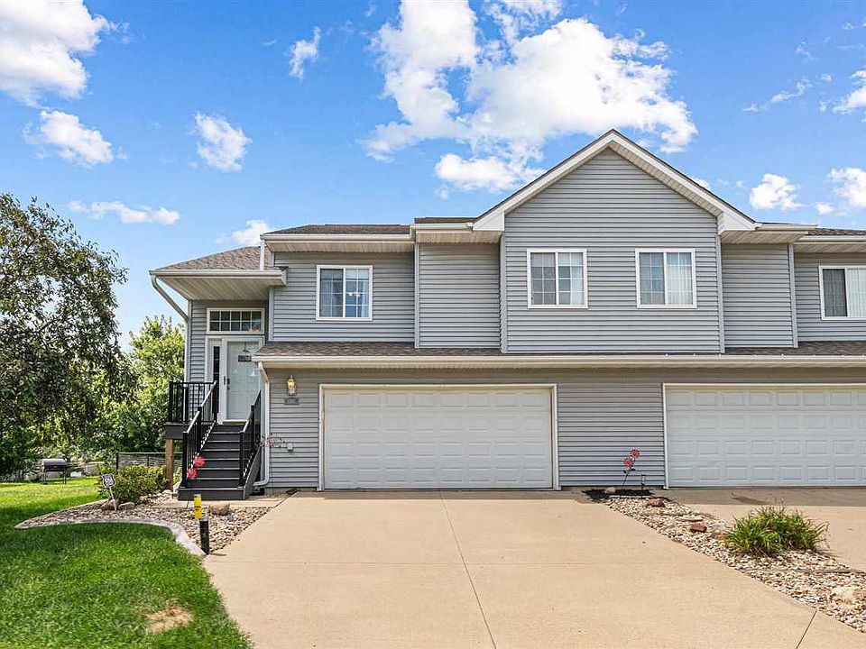 Tucked near the end of a quiet cul-de-sac, this well-maintained home offers a huge yard and 1,704 sq. ft. of comfortable living space. The open floor plan features a spacious living room with a cozy corner fireplace. Step outside to enjoy the low-maintenance 16’x14’ deck and matching front steps, perfect for easy outdoor living.  The large eat-in kitchen includes ample cabinet and counter space, a pantry, all appliances, and LVP flooring. Upstairs you’ll find two bedrooms, including a 12’x13’ primary suite with direct bath access. The walkout lower level family room opens to a patio, extending your living and entertaining space outdoors.  Updates and features include LVP flooring throughout, brand-new carpet in the primary bedroom (2024), professional landscaping with patio pavers, and an in-ceiling speaker system. A great opportunity in a desirable North Liberty neighborhood with plenty of space to enjoy inside and out!
