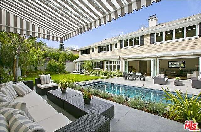 Brand new exquisitely designed home by acclaimed architect Ken Ungar. This impressive two-story East Coast Traditional style home with a blend of modern design and finishes is located within a short distance to the Pacific Palisades Village on a quiet cul-de-sac above the Palisades Alphabet Streets. Boasts over 6,000 square feet on large 21,000 square foot lot with gorgeous mature trees and new landscaping; including a large grassy yard, modern design pool, spa, fire-pit with sitting area and patio; all perfect for outdoor entertaining. There are 5 grand sized bedrooms with a secondary upstairs family room, plus a downstairs wood paneled office. Upon entering the home you are greeted by a spacious center hall plan with rift and quarter oak floors that continue through the entire house. There is a formal living room to the left with fireplace and on the right is the formal dining room with a convenient butlers pantry for access to the kitchen. Towards the back of the house is the impressive brand new large chefs dream kitchen with top of the line appliances, stone counters, spacious center-island; adjoins the family room, breakfast room combination dressed with fireplace and massive modern folding doors to access the backyard to enjoy indoor-outdoor entertaining. The entire area is accented with tongue and groove ceiling, beautiful moldings and wainscoting. Upstairs offers an enormous master suite with vaulted ceiling, cozy sitting room, fireplace and a lavish bathroom with hardwood floors, soaking tub, his and her vanities, glass enclosed shower and a large custom built walk-in closet for two.