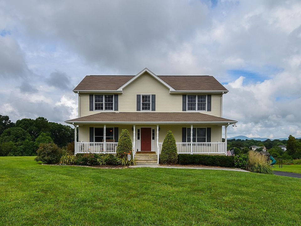 Stately colonial situated on 2 acres with panoramic views. Home boast open floor planwith 3 bedrooms and 2.5 baths, tons of bookshelves and office area .Great kitchen with lots of cabinets, granite, center island and nice size breakfast area. Home has potential for 4th bedroom, currently being used as playroom. Room for expansion on lower level and oversized 2 car garage.
