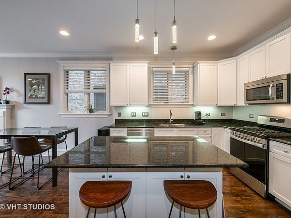 Welcome home to this gorgeous Turn-key home! This recently renovated 2 Bedroom & 2 Bathroom condo situated on a tree-lined street in the heart of Old Town invites comfort and exudes modern elegance! With its rich hardwood floors, generous living space, and premium finishes throughout, you'll enjoy a perfect setting for working, relaxing and entertaining. The newly renovated bright gourmet kitchen features brand new stainless steel appliances, sleek white cabinets, new hardware, granite counters, and a large center island easily accompanied by barstools. Or enjoy your meals at the dining table adjacent to the kitchen. Both bathrooms have been beautifully upgraded with marble tile & quartz counters. A gas fireplace, crown molding, built in speakers, and Juliet balcony complete the roomy living area. The sensational master suite includes an expansive professionally organized closet, a sleek en-suite bath with stunning tile, quartz counters, dual vanities, large tub and oversized glass enclosed separate shower. The second bedroom features professionally organized closets + can dual as a guest bedroom/office. The spacious balcony easily accommodates a large outdoor dining set, grill, and views of the skyline! Thoughtfully chosen custom window treatments and lighting. Every stunning detail was carefully selected and of premium quality. Garage parking included. You'll love the convenience of this Old Town condo, an easy walk to both the Red & Brown Line trains, shops, nightlife, restaurants. Less than a mile from the Lake front & LSD!