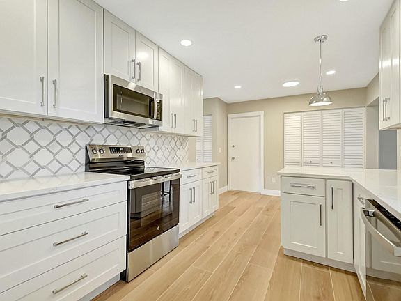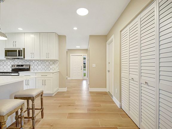 Roof is 2020 and A/C is 2022 and completely hurricane protected and renovated. Step into this tastefully updated home where modern living meets timeless charm. The wood look tile floors flow throughout the entire house. The heart of the home is the beautiful kitchen with quartz countertops and stainless steel appliances. This is a turn key ready to move into home in a fantastic location. Enjoy your Florida lifestyle just a few miles from the beach and all that Atlantic Avenue has to offer. This communities HOA covers the replacement of roofs, lawn service, gym, pickleball, tennis, walking trail and so much more.