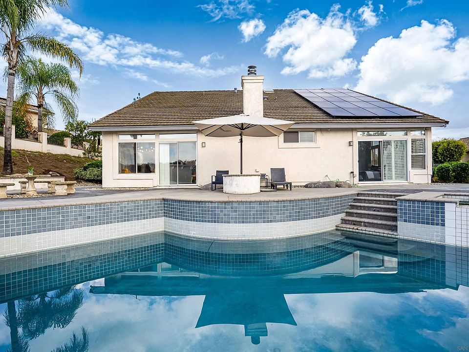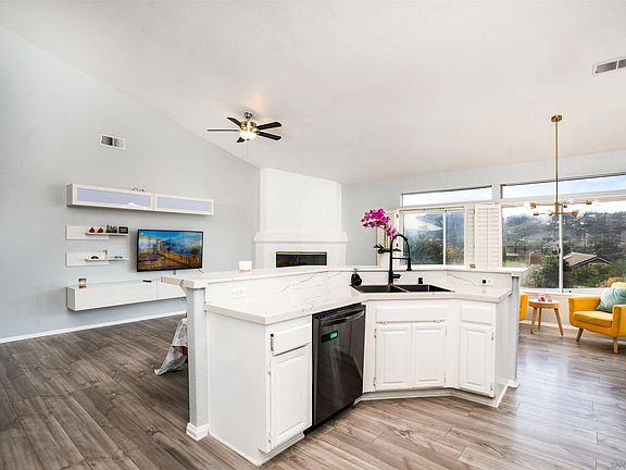 Welcome to Oak View Way, a beautifully upgraded home nestled in the highly sought-after Hidden Trails community of Escondido. This residence captures the essence of Southern California living with open, airy interiors and seamless indoor-outdoor flow. Enjoy a chef-inspired kitchen featuring elegant finishes and modern appliances, perfect for entertaining or quiet evenings in. Large windows frame serene mountain views, while the landscaped backyard offers a peaceful retreat with a covered patio, mature greenery, and space for gatherings. Additional features include owned solar panels, a whole-house fan for enhanced energy efficiency, and an EV charger, providing modern convenience and sustainability. Located near hiking trails, scenic parks, and top-rated schools, this property blends comfort, elegance, and convenience in a truly desirable location.