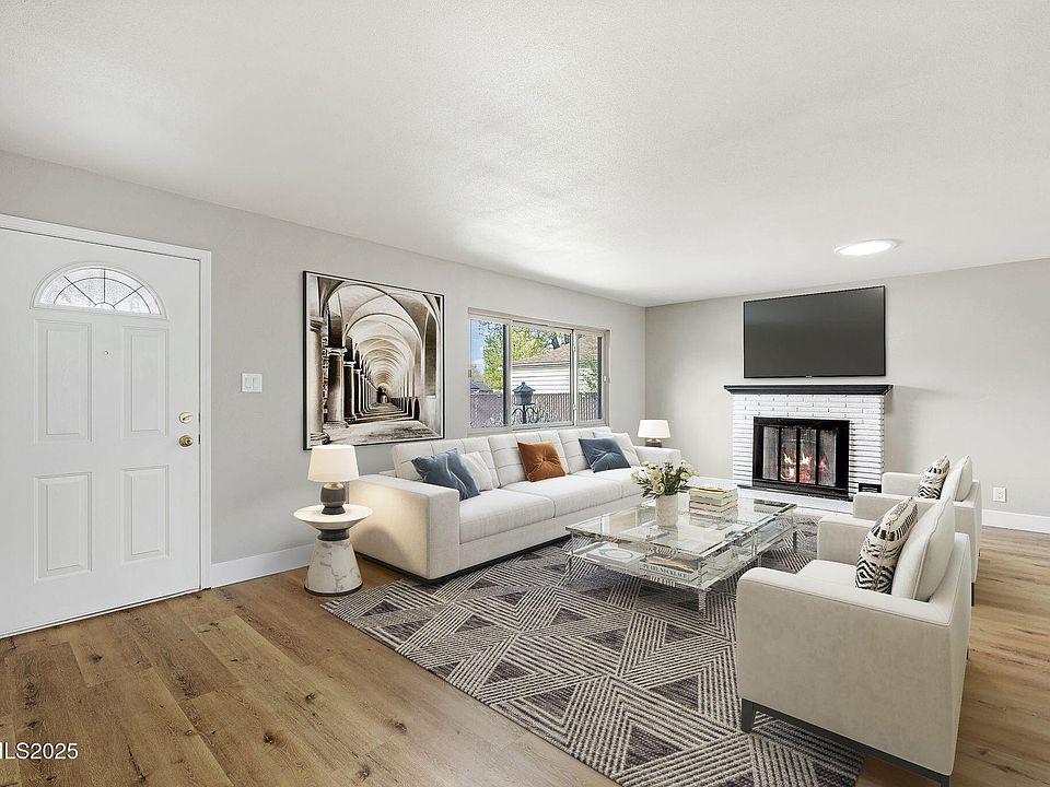 Fully remodeled with modern finishes throughout, this home features new LVP flooring, fresh interior paint, updated fixtures, and contemporary lighting. The living room includes a classic wood-burning fireplace, while skylights in the kitchen, hallway, and living area bring in soft natural light all day. The popcorn ceilings have been removed, giving the home a clean and modern look. The kitchen offers ample cabinet storage and prep space, along with all new appliances. Just off the kitchen is a spacious laundry area and mudroom for added convenience. The oversized bonus/flex room spans 440 square feet with both interior and exterior access, ideal for a home office, guest suite, or game room. Outside, both the front and backyard are fully fenced, with the backyard featuring a covered patio surrounded by mature lilacs and rose bushes. A large shed with power, ventilation, and a skylight offers excellent storage or workshop space.