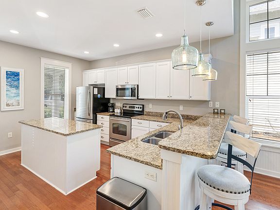 Your slice of paradise awaits! This spacious 3-bedroom, 3-bath home is perfectly positioned on the 3rd hole of Sandestin's renowned Raven Golf Course, offering serene views of the fairway and lake. With two bedrooms on the main level and a large third bedroom upstairs, 1365 Raven's Run beautifully combines comfort, style, and functionality. Elegant oak floors grace the main living areas, complemented by granite countertops in the kitchen and baths, a GE stainless steel appliance package, and a double vanity in the primary bath. Generously sized closets throughout provide ample storage, while an abundance of windows fills the home with natural light--creating an inviting ''light and bright'' ambiance. Enjoy outdoor living on two spacious covered porches, one of which is screened, and take advantage of the additional golf cart parkingperfect for the two 6-seater golf carts included with the home. Offered furnished, this residence is ideally located near the fabulous Laurel Grove community pool, hot tub, and fitness center, delivering the ultimate resort lifestyle!
