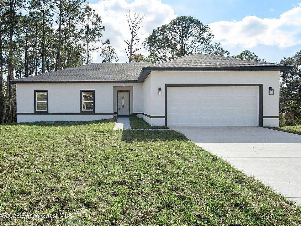 $15,000 Buyer's Incentives OR This house comes with a locked in REDUCED RATE as low as 5.25% (APR 5.751%) as of 08/07/2025 through List & Lock™. This is a seller paid rate-buydown that reduces the buyer's interest rate and monthly payment. Terms apply, see disclosures for more information. Modern Living in Palm Bay - Your Dream Home Awaits! Welcome to this beautifully designed brand-new home in the heart of Palm Bay, where modern aesthetics meet sturdy craftsmanship. Built with block construction, coated in durable stucco, and supported by a solid slab foundation, this home is built to stand the test of time. Step Inside: As you enter, you're greeted by a sunny and spacious open layout designed for both comfort and style. The home features a dedicated living area, a separate dining space, and a large kitchen - all bathed in natural light. Gourmet Kitchen Features: Elegant light shaker cabinets with soft-close technology, Stunning quartz countertops High-quality stainless steel appliances, a spacious walk-in pantry - perfect for a large family. Work-From-Home Ready: This home includes a versatile flex/office space with a USB outlet, offering the ideal setup for remote work or study. Master Suite Retreat: two large windows for ample natural light Convenient USB outlets, Spacious his-and-hers closets, A luxurious en-suite bathroom with: Double vanities and oversized mirrors A tall, glass-enclosed shower Family-Friendly Layout:On the opposite side of the home, you'll find three large bedrooms, each with ceiling fans, sharing a spacious bathroom designed for comfort and convenience. Outdoor Oasis: From the living area, step out to the large lanai, where you can relax and take in the peaceful backyard, making it the perfect space for unwinding or entertaining. No HOA or CDD Fees! This home is not in a community, so you'll enjoy the freedom of no HOA or CDD fees. Located in a prime area of Palm Bay this home offers the perfect combination of tranquility and accessibility. Don't Wait - Schedule Your Tour Today!Experience the charm, quality, and modern living of this exceptional home. Pictures from different houses- same floor plan, pics are staged. Ask for a complete list of homes available now.