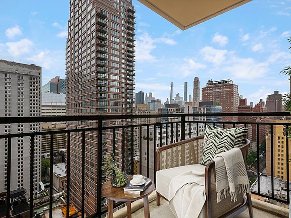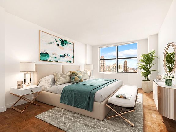 Gracious entry flows to a thirty-four foot great room. Split king-sized bedrooms. Big windowed kitchen, custom cabinetry, stainless appliances. Stunning closets, including two walk-ins! Balcony. Two full marble baths including windowed main. Fitness center, playroom, rooftop sun terrace. Prime Upper East Side.