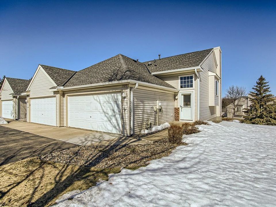 Cozy end unit, nicely updated in great location! This split-level town home features a spacious foyer with easy access to the garage and coat/boot storage. The upper level boasts TONS of natural light through the large windows and big patio door. With new carpeting throughout, the living and dining rooms are open to the kitchen space, perfect for entertaining. The large kitchen has plenty of cabinet and counter space as well as room for a center island, if desired. The upper level bedroom is very spacious and adjacent to the full bath. The lower level has a HUGE family room with gas fireplace, spacious second bedroom and full guest bath. The lower level laundry room has great storage as does the closet under the stairs. The lower level is a walkout to plenty of green space, too! Great for outdoor fun. The exterior features a newer roof and driveway and new front door. This location is close to trails and all of the amenities in Maple Grove! Welcome Home!