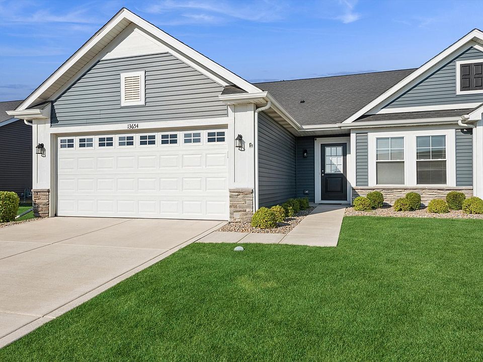 READY NOW--no waiting on construction delays! This beautifully maintained duplex offers the comfort of established new construction with just one previous owner, so you get the look and feel of brand-new without the wait. Enjoy modern living with a sun-filled open floor plan, custom kitchen with granite and stainless steel, private den with French doors, and a tucked-away primary suite with walk-in closet and private bath. With landscaping, irrigation, and thoughtful upgrades already in place, this home is move-in ready and stress-free. Golf Cart friendly community.