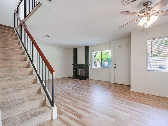 Upgraded two story home in prestigious Poway Unified School District. Bright with large windows, this unit offers hard flooring downstairs with carpet for upstairs bedrooms. Kitchen boasts matching stainless appliances, plenty of storage and open farm sink. Primary bedroom features expansive wall closets and dual vanity in the bath. Convenient laundry room in unit and cozy fireplace. The low maintenance fenced yard with turf and a two car garage round out this beautiful property.
