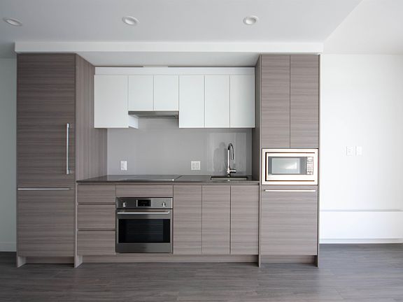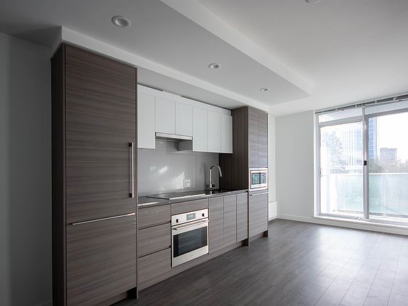 Floor-to-ceiling windowsSpacious private balconyModern kitchenQuartz countertopsIntegrated appliances