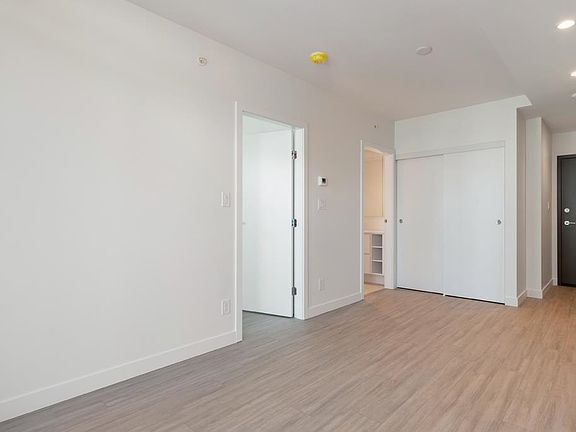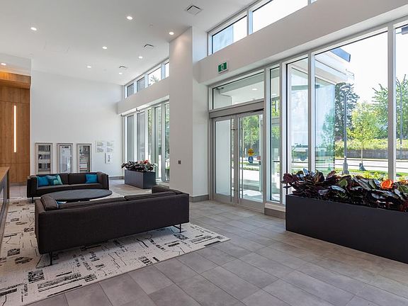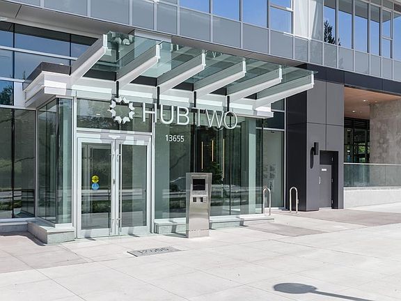 This HUB Two 443sf 1 bedroom condo has a huge 85sf balcony spanning two-thirds the width of the condo, which can be accessed from both the living room and the bedroom. Through the foyer, you enter directly into the open living-dining room with laminate floors, a coat closet, and sleek gallery kitchen. The kitchen features quartz countertops, porcelain backsplash, Bosch integrated fridge, Blomberg integrated dishwasher, Fulgor oven and Bosch induction cooktop. The 4 pcs bathroom comes with large format porcelain floor tiles, quartz countertop, soaker tub w/ large-format porcelain apron, frameless glass shower enclosure, and dual-flush toilet. Rent includes 1 parking stall.