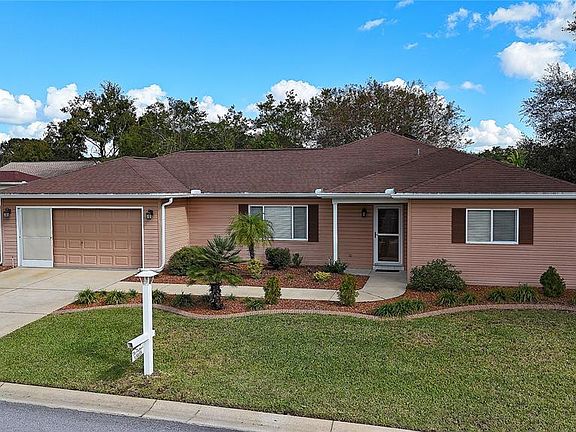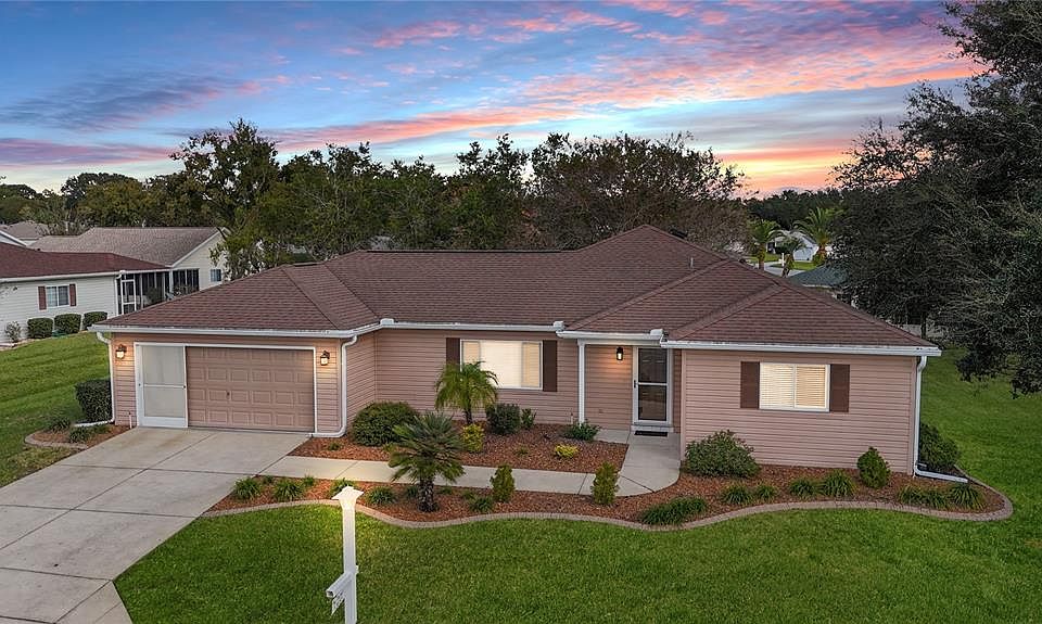 Here is an awesome opportunity to be able to live in this prestige gated 55+ community of Del Webb Spruce Creek Golf and Country Club. Mr. & Mrs. Clean currently live here and are wanting to start a new chapter in life. Professionally landscaped with curbing. Move-in ready. Laminate flooring throughout with tile in the bathrooms. Even the enclosed lanai is tiled; features acrylic windows w/valances, ceiling fan w/lighting and is climate controlled for year round use. Paver patio completes the outdoor living scenario with great eastern exposure. The home is very comfortable with living/dining combo that has crown molding plus a pony wall at the entry for architectural interest. The galley kitchen has stainless still appliances and sink with upgraded faucet; Formica counters with tile backsplash, recently painted cabinetry w/upgraded hardware. Breakfast nook with bay window over looking the patio and also features crown molding from living/dining room areas. Bonus room (great for office/den). Primary suite has slider entry to lanai and has a walk-in closet plus a built-in closet. En-suite has double, upgraded vanity with culture marble counter. Walk-in shower with sliding doors, raised toilet and linen closet. A window above the toilet adds natural lighting. Large guest bedroom and bath will not disappoint guests. Two-car garage w/sliding privacy screens, utility sink, painted floor, keyless entry, pull-down stairs & storage. Shingles (2013), HVAC (2022), water heater (2025). Located close to the Front Gate. Start enjoying this gated community that has 3 heated pools, tennis, pickleball, softball, fitness center, community center and restaurant onsite plus 4 - 9 holes of golf course. Numerous clubs and activities. Do as much as you want --- or nothing at all! For once, you are in control. Come be our new Del Webb neighbor.