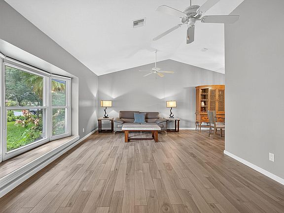 Welcome to this beautifully updated 3-bedroom, 2-bath corner-lot home in Sugar Pond Manor, offering the perfect blend of style, comfort, and functionality--all with no HOA restrictions. Step inside and be impressed by the expansive split floor plan, ideal for both entertaining and privacy. The home showcases continuous wood-look porcelain tile flooring throughout, creating a warm, modern aesthetic. The designer kitchen features quartz countertops, custom cabinetry, and recently updated stainless steel appliances--a dream for any home chef. Both bathrooms have been fully remodeled with high-end finishes, offering a spa-like feel with timeless design. Enjoy year-round comfort with a newer A/C and water heater, plus the long-term savings of fully owned solar panels. For added peace of mind, the home includes impact-rated windows, doors, and sliders throughout. A stone-accented fireplace adds charm and character to the open living area. Outdoor living is just as impressive with a spacious screened-in patio, perfect for relaxing or entertaining guests. The expansive, fully fenced backyard offers privacy, beautiful fruit trees, and a new irrigation well, keeping your lawn lush and green with ease. There's even room for a future pool! Located in one of Wellington's most desirable, family-friendly neighborhoods and zoned for A+ rated schools, this home is just minutes from parks, shopping, dining, and world-class equestrian venues. Don't miss this unique opportunity to own a move-in-ready home with all the upgrades and no HOAright in the heart of Wellington.
