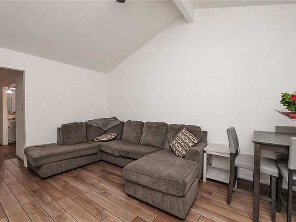 Cozy dining areaCovered patioCute galley kitchenSoaring cathedral ceilingFrench doors