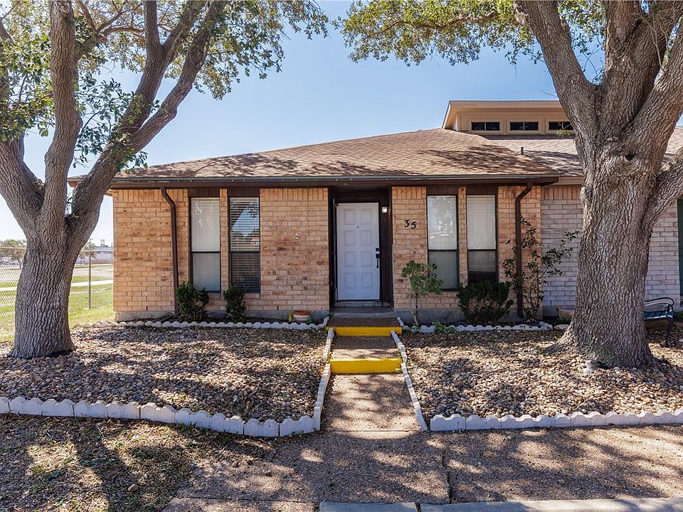 Charming One-Story Townhome in the Heart of Calallen ISD! Welcome home to this adorable one-story townhome featuring 2 spacious bedrooms and 2 full baths, this home offers a bright, open living area with a soaring cathedral ceiling that creates a warm and airy feel. Enjoy cooking in the cute galley kitchen, and share meals in the cozy dining area that opens through French doors to your covered patio and carport — ideal for relaxing or entertaining. Both bedrooms are generously sized, offering plenty of comfort and privacy. With tile flooring throughout (no carpet!), maintenance is a breeze. Conveniently located just around the corner from shopping, restaurants, fitness centers, and more, this home combines comfort, convenience, and charm — all in one perfect package! Don’t miss this opportunity — schedule your showing today!