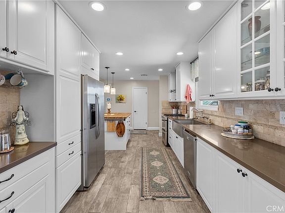Recently remodeled single story home on large 8,000 sq ft lot. Home features an open floor plan with sliding doors that lead you to your backyard. A Chef’s Kitchen opens into family room equipped with a butcher-block island that opens w/ updated vaulted ceilings. Home includes newer cabinets, quartz counters, large stainless farmhouse sink, smart gas range, dishwasher, coffee bar and more! A dining room approximately 140 square feet was added off kitchen which allows for access to the garage. Other features: newer roof, newer windows, newer HVAC w/smart thermostat, tile plank wood-like flooring throughout, expanded driveway, which is permitted with the city, to allow easier access and great for RV’s. Front of the home is equipped with a sewer dump for that RV. Backyard has a new steel garage for workshop or storage. A newer Generac generator was installed plus tankless water heater, newer rain gutters and downspouts and much more! Bring your toys! Relax in the backyard under your two covered patio areas and enjoy the garden lovers yard with grass area, planters, and mature fruit trees and vegetable garden. Won’t last long, don’t wait.