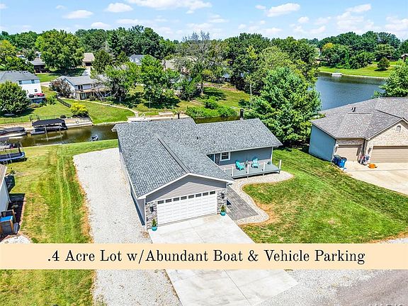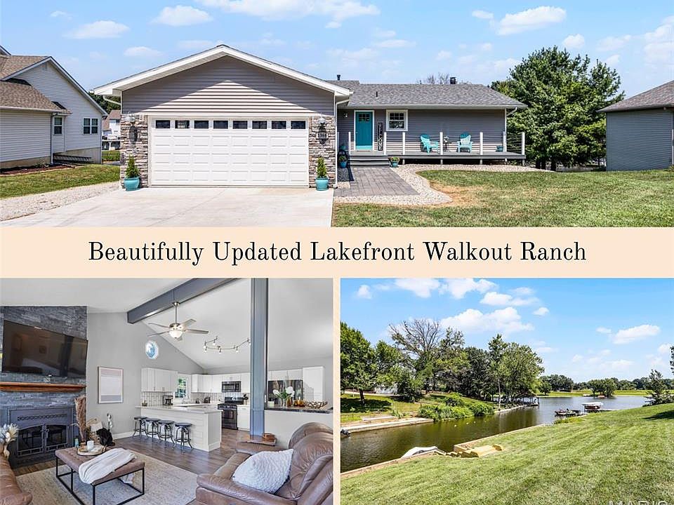 Looking to upgrade your lifestyle? Just add water! Step inside this beautifully renovated ranch and be greeted by modern updates and breathtaking lake views. The main floor features an open-concept design, with a sleek kitchen boasting solid-surface countertops, abundant cabinetry, breakfast bar and dining space. The kitchen flows seamlessly into the living room, highlighted by a dramatic floor-to-ceiling stone fireplace, vaulted ceiling and expansive windows overlooking the water. The primary suite features a huge custom walk-in closet, barn-style door to the spa-like ensuite bath, walk-in tile shower dual vanity & Bluetooth speakers. A second bedroom, full bath, and spacious laundry room with extra cabinetry complete the main floor. The finished walkout lower level offers endless possibilities including a sweet spot of extra luxury with the newly finished full bath with walk through steam shower & sauna! Two additional bedrooms, expansive family room and a large storage area w garage door access complete the package! So much parking for your guests & recreational items. Step outside to an entertainer’s paradise featuring a large deck with modern cable railing overlooking the lake to witness the most beautiful sunsets & starry night skies. The expansive patio, and oversized yard lead to your private boat docking space. Less than 15 minutes to all interstate access. It's the total package. Seller can accomodate a quicker close if needed.